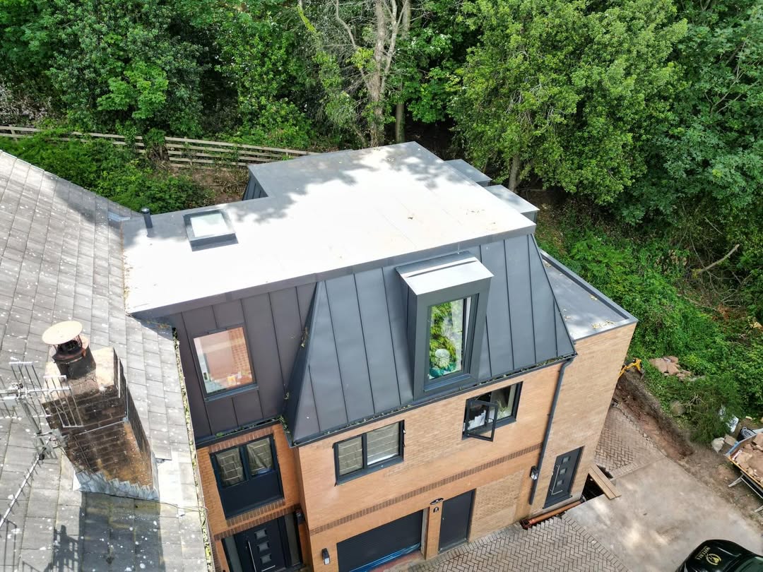 An excellent showcase of GreenCoat® PLX Mountain Grey on this standing seam roof in Bristol by Profile Roofing and Cladding.