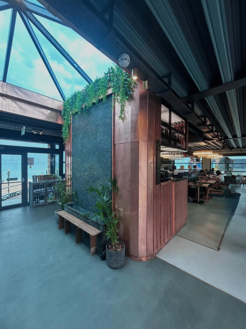 Metal Roofing Ltd have completed this beautiful project using Aurubis Nordic copper inside and outside, the inside features a stunning bar with rich copper cladding and overhead shelving that makes a real statement piece. Elsewhere, the copper detailing continues with elegant wall features and trims that bring warmth and character to the space. Outside, the Nordic copper roofing has already begun to develop a beautiful natural patina, giving the building a timeless, weathered character that contrasts perfectly with the brickwork and the coastal surroundings of Brighton. Metal supplied by Metal Solutions.