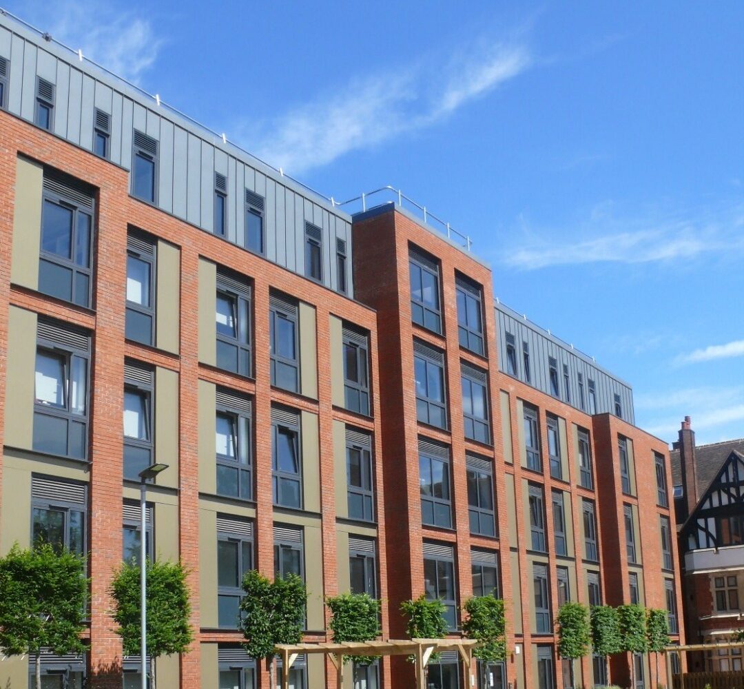 Situated in the heart of Coventry and clad in Traditional Textures precoated aluminium using an angled standing seam.